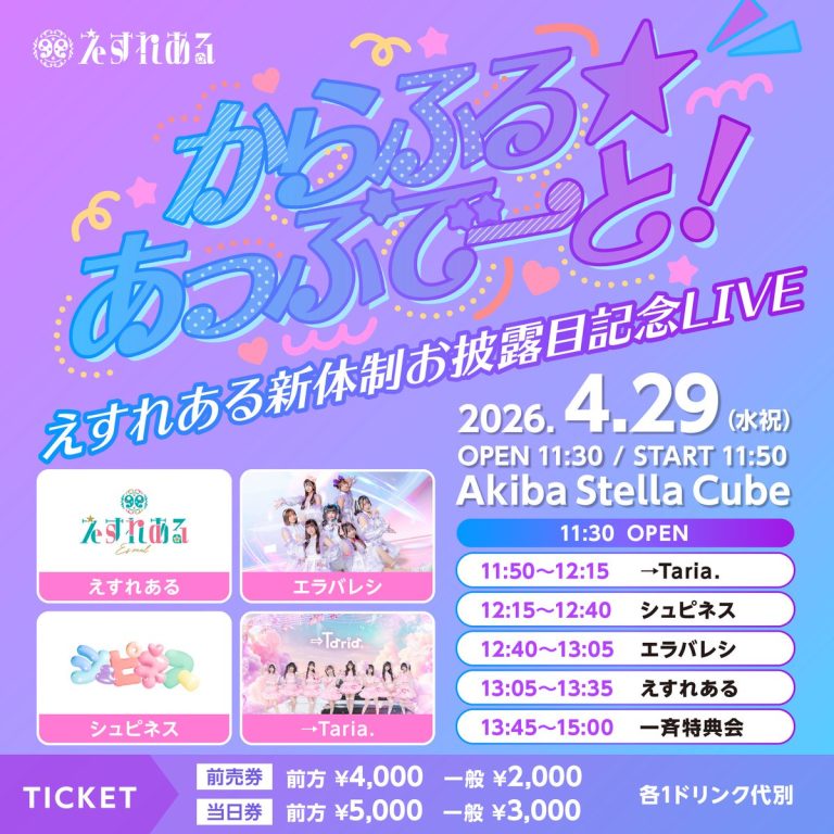 えすれあるONEMAN LIVE!! 『ぱぱぱ☆えすれある 〜退屈な毎日を、ボクらで変えてしまおう〜』開催決定!!